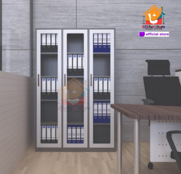Lemari Arsip Besi Filing Cabinet Besi 3 Pintu Kaca HDW 03 0.7mm