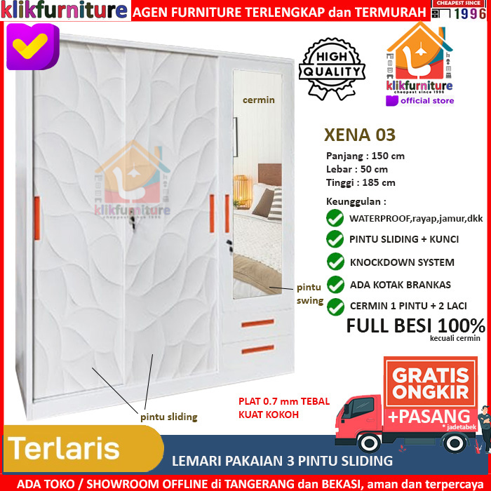 XTRA LARGE FULL BESI Lemari Pakaian Besi 3 Pintu XENA